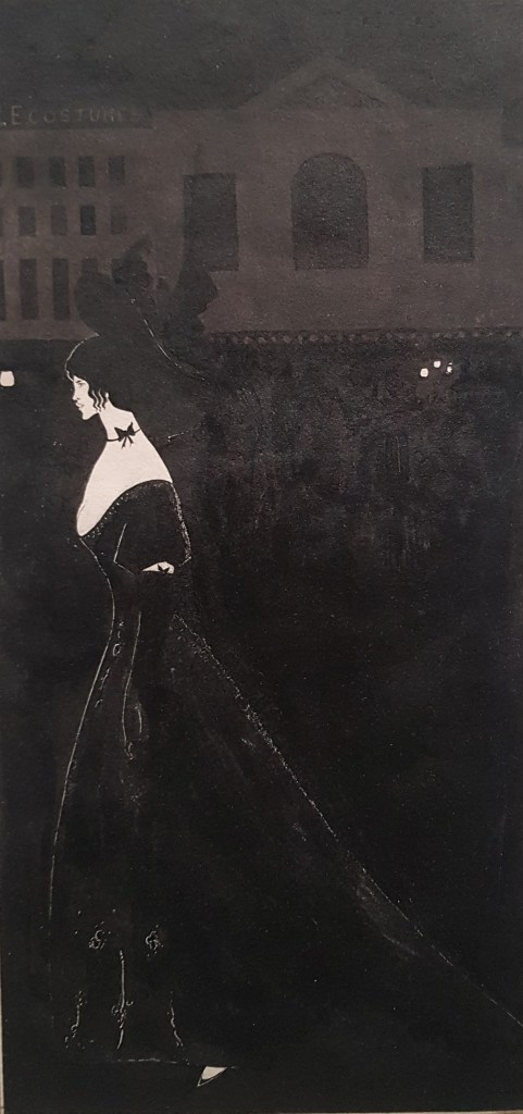 He was on the peak of his fame, notoriety and craft when appointed art editor of The Yellow Book, a groundbreaking magazine on art and literature, published with a hard cover and a provocative title referring to the yellow wrapping paper used for French erotic literature. The first cover perfectly set the tone, featuring an independent, laughing woman, perhaps making fun of us, and a second figure slightly in the background looking thoughtful enough to provoke our reflections. His radical style, known as “night piece” or “manière noire” matured, with very large black areas and sharp white lines in reserve. Toulouse-Lautrec’s influence is obvious, but the context is clearly the London night scene with its gas street-lamps. The press was extremely negative to this new publication as it appeared too modern, too dangerous, too decadent. Beardsley had edited only 4 issues when dismissed in early 1895 after Wilde was prosecuted for committing indecent acts. The downfall was brutal for the whole Decadent movement and Beardsley had to self-exile to France. Commissions lost their prestige and his income remained unreliable until his death, 3 years later.